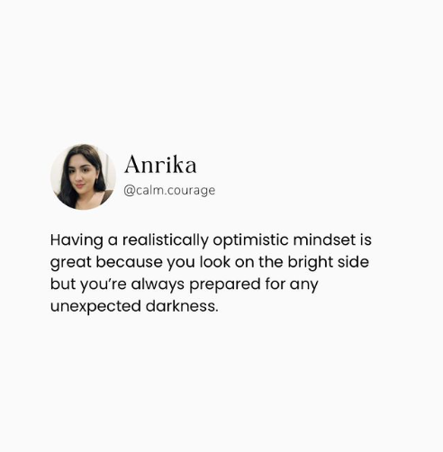 When adopting a realistically optimistic mindset, we focus on the good possibilities whilst recognising something negative may jump into the equation, and that’s ok (which again is acceptance).